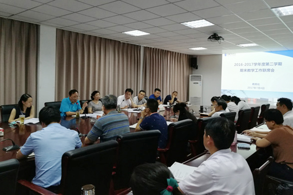 教学质量监控办公室主任李志远首先对2017届本科毕业论文(设计)期末自查和抽查情况进行了通报。教务处处长助理濮明月从课程改革情况、实验室建设项目论证成果、学科与科技竞赛获奖情况、教师因私调课情况、评教满意度与评学参与率、辅修报名进度、学位授予情况、期末考试情况共8个方面对本学期工作作阶段性总结。同时,她还从实验室建设与场地改造、低值易耗品与教材采购、学科与科技竞赛开展、2017年度省校级质量工程申报、下学期教学任务落实与排课、期末考试成绩录入与补考名单统计、2016-2017年度教师教学质量考核、多媒体教室一卡通门禁系统建设等方面对暑期重点教学工作进行布置和解读。