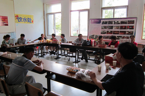 外国语学院最吸引人眼球的便是设置了一个新生签名留言板,最温暖人心的就是开辟了一间教室,里面摆放了糖果和茶水供家长休息,家长们正在一边喝水,一边聊天,谈论自己的孩子和对学校的印象。