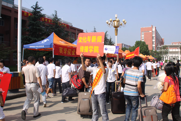 早晨6点,志愿者们早已准备就绪,等待着第一班校车前往各汽车站和火车站,迎接来自四面祖国各地的2011级新生。到了站点后,志愿者们就在出站口处举起校牌,等待新生。他们热情的为家长、新生送水、提箱子、陪他们聊天,组织引导新生和家长有序上车到校。