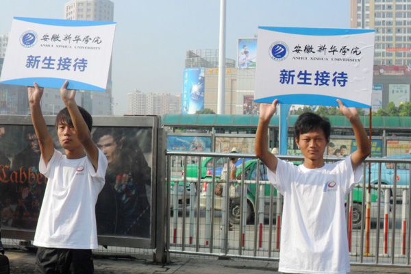 在汽车站、火车站,华园的志愿者们从新生踏上来校的第一步就做足了迎接准备,橙色的白色的校服,高举的新生接待牌都给新生醒目的提醒。早晨6点钟,志愿者们早已准备就绪,等待着第一班校车前往各汽车站和火车站,他们大部分是青协和校学生会的成员,迎接来自四面八方的学弟学妹们。“我们早晨5点多就起床”志愿者沙迪迪说,“已经做好了全天工作的准备”。据了解,志愿者们的工作从早晨6点开始将持续一整天,中午轮流用餐,期间也没有休息的时间。他们把迎新很放在心上,都有把闹钟定的很早。