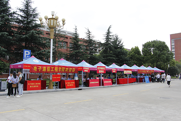 校领导一行来到各二级学院的新生报到点检查迎新工作情况。各二级学院门前大气醒目的“欢迎新同学”喷绘,动漫学院迎新工作人员身着特色服装,土木与环境工程学院、电子通信工程学院、信息工程学院展示各具专业特点的模型……各二级学院咨询处、报到处、缴费处、家长休息处、就餐安排、志愿服务等各个工作点都安排妥当,确保迎新工作平稳顺畅。
