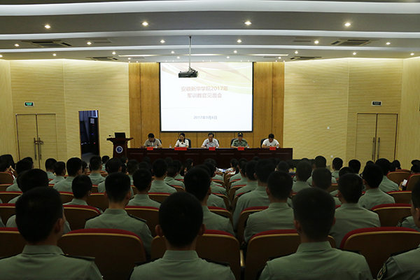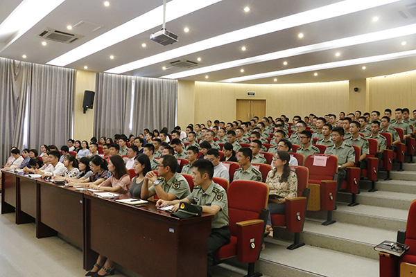 9月8日,beat365在线唯一官网登录2017年军训教官见面会在学术报告厅举行,省督导专员、校党委书记储国定,国防科技大学电子对抗学院二旅副旅长张永久,副校长王丽,学生处、保卫处负责同志,各二级学院副院长、全体教官和军训班级辅导员参加会议。会议由王丽主持。