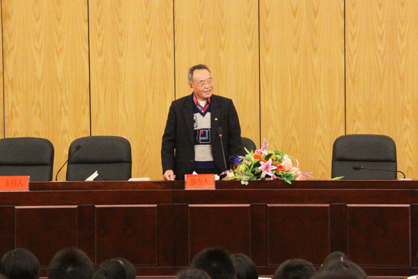 陈圣章老先生首先对在场的各位同学已经成为一名大学生表示祝贺,并从学习、生活、时间三个方面将高中与大学相比较。陈老说,学习上,大学较高中而言学习压力比较小,以主动学习为主;在生活方面,大学开始宿舍生活,独立于父母,远在他乡,更要学会自立,学会与人相处;在时间上,陈老特别强调在大学要会“站起来学习”,多去图书馆,多实践,不要浪费课余的时间。接着,陈老就“怎样适应大学生活”提出建议,同学们首先要在思想上做准备,有远大的理想、有学习上的目标;同时要主动的适应新环境,陈老语重心长的对同学们说:“环境能锻炼人。在日常生活中要多关心人、多帮助人,形成良好的人际关系。”