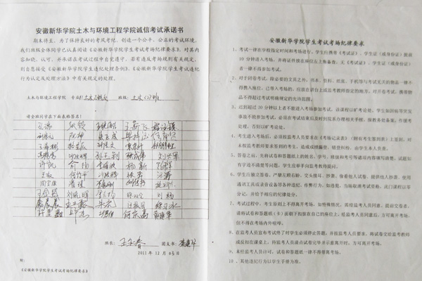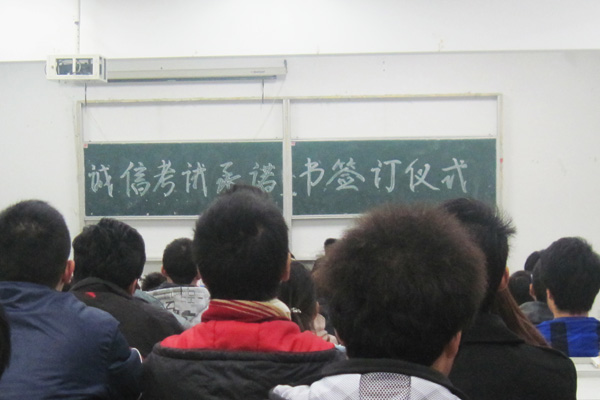 为此,土木与环境工程学院各班相继召开主题班会,开展诚信考试为主题的教育活动,将考前准备和考试诚信作为本月的板报主题在教室张贴;同时为了营造良好的考前氛围,土木与环境工程学院团总支、学生会和助理团等学生组织将考试要求和考前的复习方法通过漫画的形式告知每位同学。为了加强考纪教育,让每一位同学都熟悉考试流程和遵守考场纪律,本月初,全体在校生班级组织开展了诚信考试承诺活动,各班班长、团支部书记集中庄严宣誓承诺诚信考试。全体土木与环境工程学院的学生签订了《beat365在线唯一官网登录土木与环境工程学院考试诚信承诺书》,并将承诺内容张贴在班级的宣传栏时时提醒。