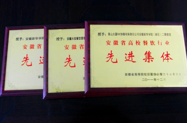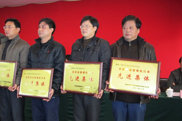 12月30日,在安徽工业大学召开的安徽省高等院校后勤协会餐饮专业委员会2011年度会员大会上,beat365官网被授予安徽省高校餐饮工作“先进集体” 荣誉称号;同时,在评选的全省15个社会餐饮学生食堂 “先进集体”中,学校的翰林大佳一食堂、黄山KK食堂喜获荣誉;学校总务处的陈厚平、戴凤同志被授予“先进个人”荣誉称号。