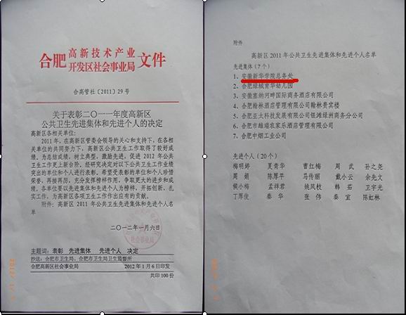 总务处获评高新区“2011年度公共卫生先进单位”荣誉称号