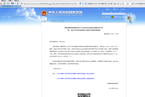 据悉,为贯彻落实《国务院办公厅关于深化高等学校创新创业教育改革的实施意见》(国办发【2015】36号)文件精神,深化高校创新创业教育改革,推进校企合作协同育人,创新高校人才培养机制要求,教育部高教司组织华为、阿里巴巴、谷歌等30家相关产业的知名企业支持高校师生共同开展产学合作协同育人项目。自2014年起,设立了教育部产学合作专业综合改革项目。该项目由教育部遴选企业设立项目,高教司统一发布项目指南,高校自主申请,高校组织项目实施,教育部和企业组织验收。项目由国内外知名企业自主立项,资助高校开展教学研究、人才培养模式改革、课程改革、教学方法改革、教材建设、配套设施建设、教师培训等,为校企双方搭建桥梁,着力培养适应产业发展需要的高质量人才,为企业发展提供良好的人才基础。