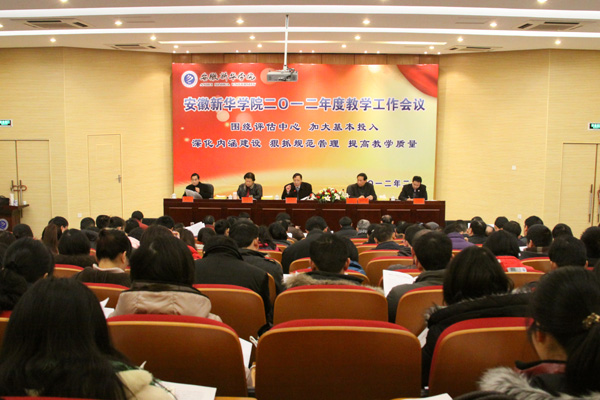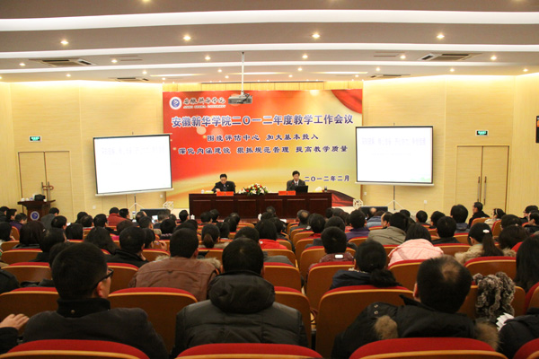 2月13-14日,beat365官网2012年度教学工作会议隆重召开。会议的主要任务是:围绕本科教学合格评估工作,进一步加强内涵建设,以“促进经费投入,促进教学建设,促进管理规范,促进质量提高”为重点,完善教学质量保障体系,实现“三个基本”,全面提升教育教学质量。全体校领导、中层管理人员、教学口主管秘书以上管理人员、系主任(副主任、主任助理)、讲师以上职称的教师参加了会议。本次大会分为四项议程。