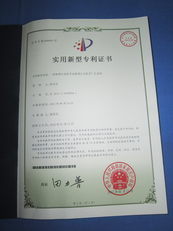 程乐乐的发明——“一种新型公交扶手及新型公交扶手广告系统”,是运用电子技术把传统静态纸质显示的公交扶手创新成动态信息式并附有无线控制和游戏等新型环保的公交扶手。
