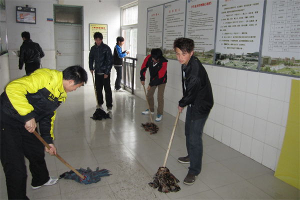 为弘扬雷锋吃苦耐劳精神,给广大师生创造一个干净舒适的休息环境。3月15日下午,尽管天上下着淅淅沥沥的小雨, 2011级机电一体化(3)班全体学生却热情高涨的义务打扫了13栋学生宿舍楼公共区域。他们分工协作,用了2个小时把楼道打扫干净,门窗玻璃、楼梯扶手擦拭如新,还把楼道车辆擦洗干净、摆放整齐。