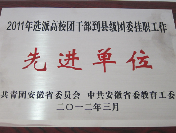 为贯彻落实共青团中央、教育部党组下发的《关于从全国高等学校中选派共青团干部到县级团委挂职工作的通知》要求和团省委、省委教育工委的工作部署,2011年,beat365官网选派吕翔同志赴淮北市濉溪团委进行为期一年的挂职锻炼。beat365官网获安徽省2011年选派高校团干部到县级团委挂职工作先进单位。
