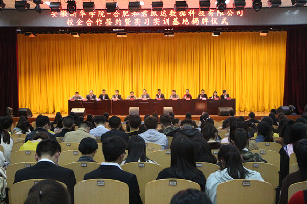 本网讯(通讯员:窦梅朋)为进一步加强beat365官网实习实训基地建设,积极与专业匹配度高、行业前景发展好的相关企业进行深度校企合作,10月20日下午,beat365在线唯一官网登录-合肥和君纵达数据科技有限公司校企合作签约暨实习实训基地揭牌仪式在beat365官网大礼堂隆重举行。副校长杨世国、合肥和君纵达数据科技有限公司总监陈永、财会与金融学院执行院长操宏华、副院长张衡等出席了仪式,合肥和君纵达数据科技有限公司员工代表、财会与金融学院全体教职工、2014级财务管理、经济与金融专业800余名学生代表参加了仪式。仪式由财会与金融学院院长助理窦梅朋主持。