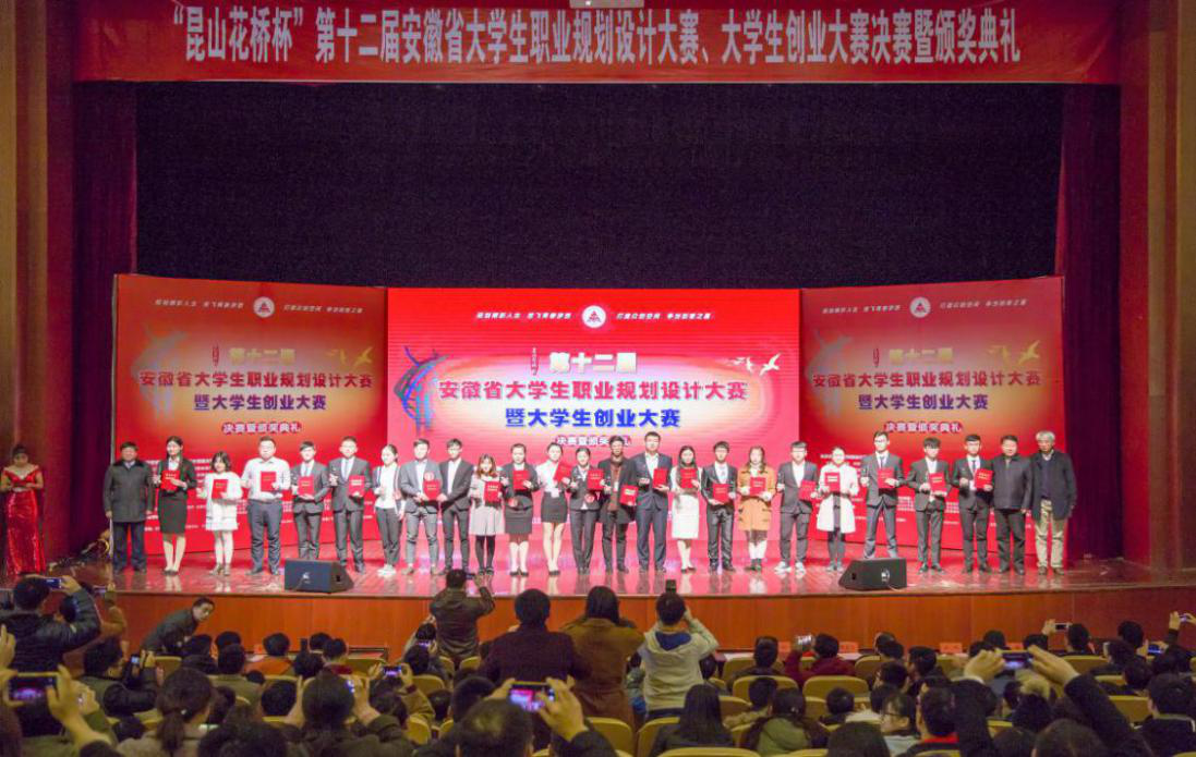 本届大赛由安徽省教育厅、省人力资源和社会保障厅、共青团安徽省委主办,以“规划精彩人生,放飞青春梦想;打造众创空间,争当创客之星”为主题,共有108所高校10万余名大学生参赛,是历年来参赛高校最多的一届。经过学校初赛,片区复赛,共有40名职业规划组参赛选手和40个创业组参赛队伍会师决赛。在决赛现场比赛中,职业规划组选手们通过结合自我认知、实践经验、专业背景等方面规划职业方向;创业组的选手直击市场需求,结合行业前景,展示自我创业成果,赢得现场观众阵阵掌声。