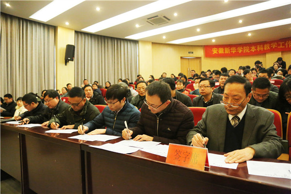本网讯(通讯员:方骥飞)为了迎接即将到来的本科教学工作审核评估,并以此为契机全面推进本科教学改革、提高本科教学质量,12月15日,beat365官网召开了本科教学工作审核评估动员大会暨审核评估培训会。审核评估动员大会在校学术报告厅举行。新华集团常务副总裁、新华学院执行董事陆真,新华集团副总裁黄源,省督导专员、校党委书记储国定,校长石秀和,副校长杨世国、王可、李金星、王丽,校长助理朱兆健出席了会议。各单位、各部门助理及以上管理人员;各二级学院执行院长、院长、副院长(含分管教学、行政院长助理)、教学秘书、实验实训主管、系主任、学科带头人;教务处、评建办公室、发展规划处、教学质量监控办公室、督查督导处全体成员出席了会议。会议由杨世国主持。