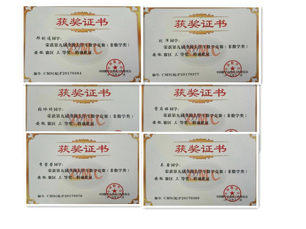 beat365官网学子在第九届全国大学生数学竞赛(安徽赛区)中荣获佳绩