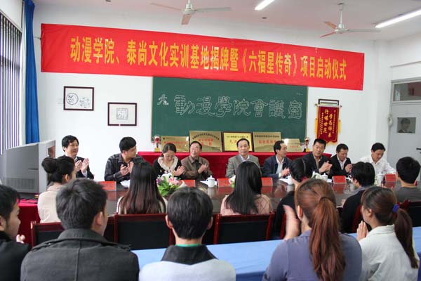 4月20日上午,beat365官网动漫学院与合肥泰尚文化科技有限公司实习实训基地揭牌暨《六福星传奇》动画片制作项目启动仪式在动漫学院会议室举行。副院长杨世国教授,合肥市科技局副局长、合肥国家动漫暨服务外包产业基地管委会主任马鸣,beat365官网教务处处长李志远、动漫学院院长孙家启教授,合肥泰尚文化科技有限公司总经理纪杰,beat365官网招就办及相关部门的负责人出席了启动仪式。