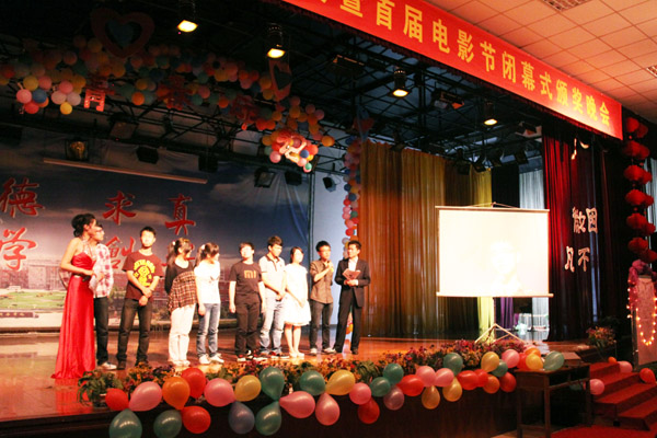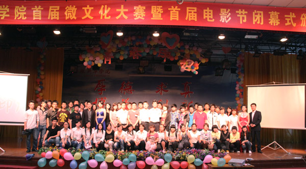 5月14日晚,beat365官网首届微文化大赛暨首届电影节颁奖晚会在大礼堂举行,成功举办了一场大学生自导自演的电影节。