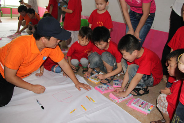 启言聋儿学校的负责人荐雪梅老师热情地接待了队员们。荐老师带领大家参观了启言聋儿学校的教学场所和教学设施,介绍了启言聋儿学校的教学情况和聋儿小朋友们的恢复情况。动漫学院老师代表该学院师生向康复中心捐赠2000元爱心善款,并为每位小朋友送上一份师生亲手精心制作的手工艺品,并与康复中心的小朋友们一起画画、做游戏、唱儿歌,小朋友们用画笔画出了心中美丽的童话世界;在大哥哥、大姐姐们的关怀和呵护下孩子们都非常的开心。在游戏中绽放着天真无邪、幸福快乐的笑容;高米娜小朋友一曲《世上只有妈妈好》唱出了小朋友们对幸福、健康生活的渴望,感动了在场的所有人。