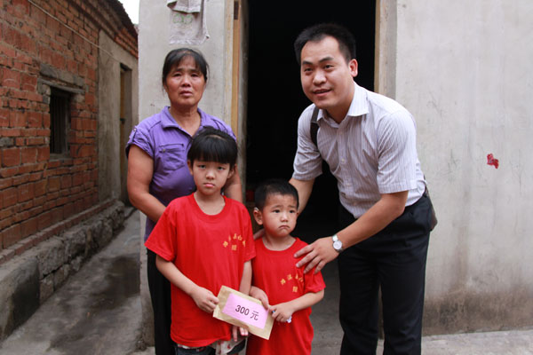 在聋儿学校老师的带领下beat365官网暑期实践队员详细走访了两个贫困家庭,分别为王海晨、王展鹏姐弟俩及任立青、任嘉欣与任开心兄妹三人的家庭各送去慰问金300元。实地的调查让队员们感触很深,这些聋哑孩子很多都是遗传疾病,一家兄妹几个都是聋哑人。本来就不富裕的家庭一下子碰到这样的打击,加上给孩子们的治疗,让这样的家庭背上了沉重的负担。