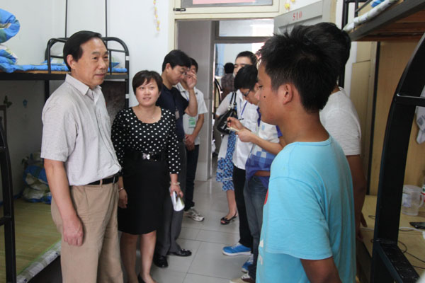 9月4日下午,该院领导班子在新生辅导员的陪同下走访了2012级新生宿舍,询问了同学们的生活情况,鼓励大家要尽快适应集体生活,在生活上互相帮助,在专业上认真钻研,经过四年磨练,成为社会栋梁之才。