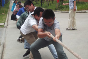 9月6日中午,在继续教育学院教学楼前进行了一次激动人心了拔河比赛,院长吴宏东作为本次比赛的裁判,副院长孙成伟和郑锋分别担任队长。比赛采用三局两胜赛制,第一局和第二局双方打成平手,第三局孙成伟一方改变战术一举拿下了第三局。整场比赛大家齐心尽力,相互协作配合,不仅增强教师间的沟通交流同时也增近了部门的凝聚力。
