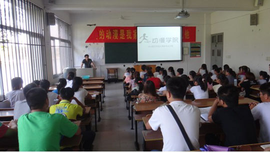 本次报告分别在动漫1101、1102和1104三个教室展开。报告之初,动漫学院院长孙家启教授首先对2012级全体新生表示热烈的欢迎和诚挚的祝贺,祝愿他们能够在将来的生活中学到更多的知识,有一个美好的未来。接着动漫学院副院长朱诵贵给新生们简单的介绍了动漫学院的发展状况和现今动漫行业的社会发展情况,使新生们对未来的个人发展有一个大致的方向。罗振林老师为全体新生做了如何适应大学生活的讲座。随后各专业老师分别介绍了动漫学院的各个专业的相关信息,并希望新生们在今后的日子里要积极学习、更好地利用身边的学习工具学习专业知识。在介绍完之后组织各班同学到动漫学院的实验室、制作中心、研究所参观,并有专门的老师给他们介绍实验室里面的相关信息,让学生了解到动漫学院的实验设备,鼓励他们能够认真学习,利用好学校的设备学到更丰富专业知识。