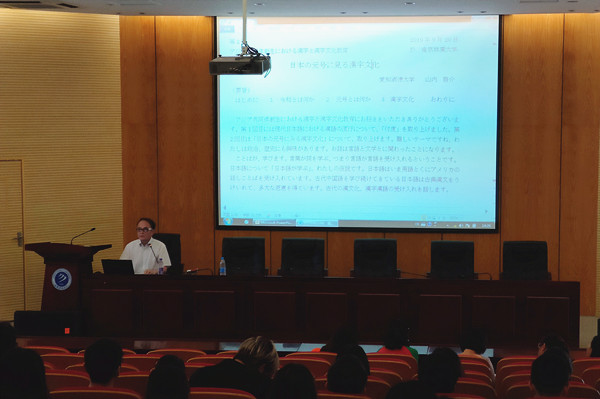 本网讯(通讯员:翟闪 赵明)9月21日下午,外国语学院邀请日本爱知淑德大学博士生导师山内啓介教授来beat365官网,作了题为“日本の元号に見る漢字文化(从日本年号看汉字文化)”的专题讲座。日语系全体师生参加了讲座。
