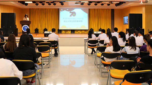 财会与金融学院党总支副书记芮萍向全体师生宣读《关于成立大学生党员宣讲团的通知》。旨在将大学生党员宣讲团发展成为财会与金融学院思政课的“第二课堂”,成为财会与金融学院基层理论、政策宣传工作和大学生思想政治教育的特色品牌。