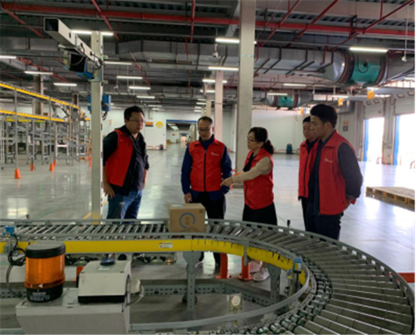 调研小组在全自动化立体仓库进行了参观与了解,翟荣兵与王磊进行了深度谈话,了解该自动化仓库的分拣系统如何运行,以及如何安排商学院物流专业学生到基地进行实践学习,也对苏宁物流的智能化运行和安全化管理给予了高度评价。
