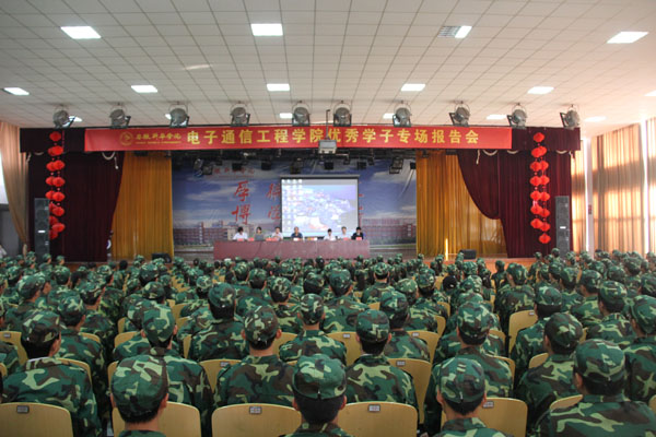 本网讯(通讯员 陈丽 摄影 陆如海)9月19日上午,电子通信工程学院在学院大礼堂为该院2012级的805名新生举办了优秀学子专场报告会。本次报告会,专门邀请了该院在企业就业、自己创业、基层就业、升学就业等的历届毕业生,以及在校生的优秀代表分别作主题报告。学校招生就业办公室副主任李洁、电子通信工程学院副院长田永泰、操宏华,该院全体辅导员、新生参加了会议。报告会由操宏华主持。