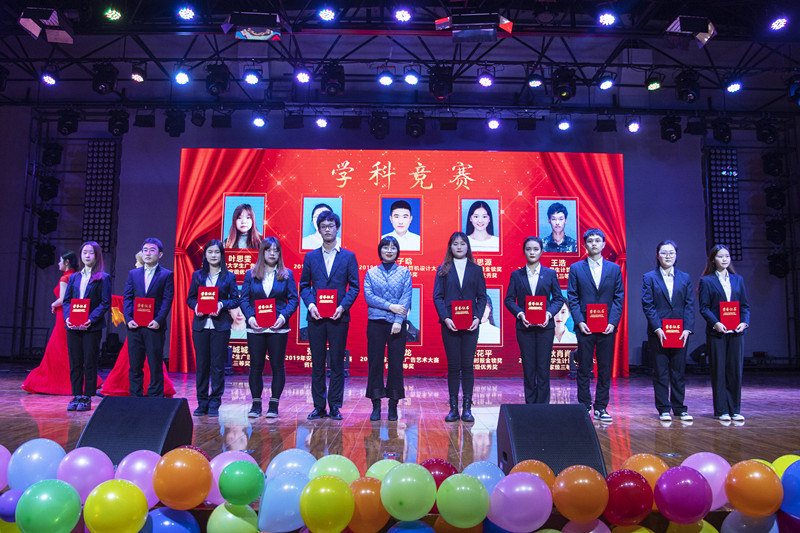 第一篇章表彰在国家级、省市级赛事学科竞赛上获奖代表的同学,2019年艺术学子在“全国大学生广告艺术大赛”、“时报金犊奖”、“创意星球学院奖”、“中国大学生计算机设计大赛”、“安徽省机器人大赛”等专业类赛事中共计斩获省级以上143项获奖。歌曲《攀登》更是唱出了艺术学子在专业学习的奋勇向前、努力钻研的韧劲。