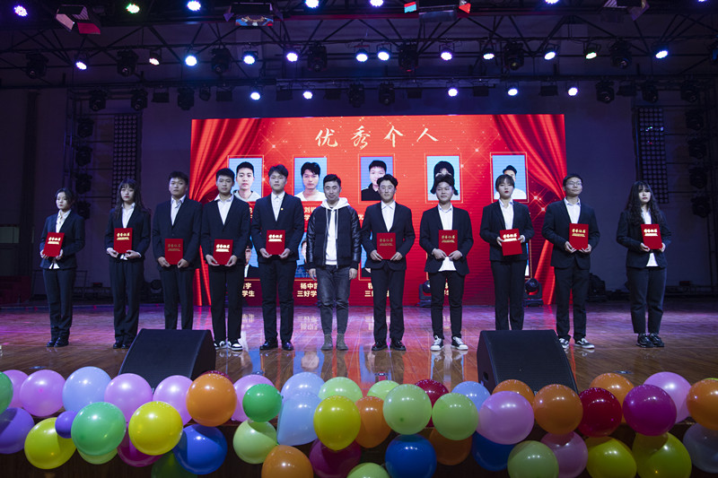 第二篇章表彰在2019年荣获优秀学生干部、三好学生、先进个人、国家奖学金、国家励志奖学金的同学们,在2019年的学习生活中涌现了一批学习优秀、思想先进、品行端正的优秀同学,在本学期起到了积极的带头作用。在学习的闲暇之时我们也有丰富的课外生活,舞蹈《影子舞》、朗诵《青春颂》展示了同学们在华园里的挥洒青春、燃烧赤诚的精彩片段。