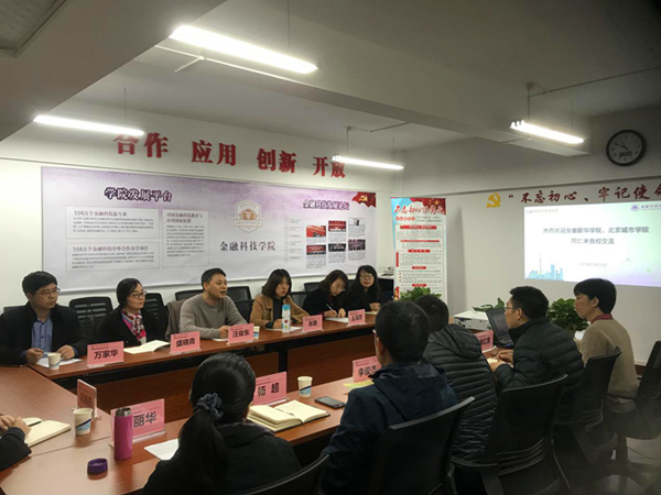 本网讯(通讯员:张璐、万家华)为推动beat365官网产业学院建设,准确把握新经济环境下对于人才培养模式的需求,做好金融科技、云计算、大数据技术等专业建设,12月12日,财会与金融学院执行院长汪俊东、信息工程学院执行院长盛晓青、副院长万家华、财会与金融学院院长助理张璐一行4人赴绍兴文理学院元培学院和上海立信会计金融学院就产业学院的合作模式进行考察。