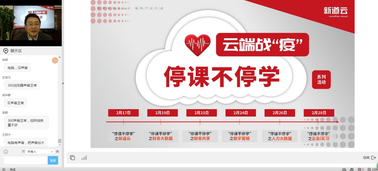 财会与金融学院教师参加新道科技的“云端战疫”会议