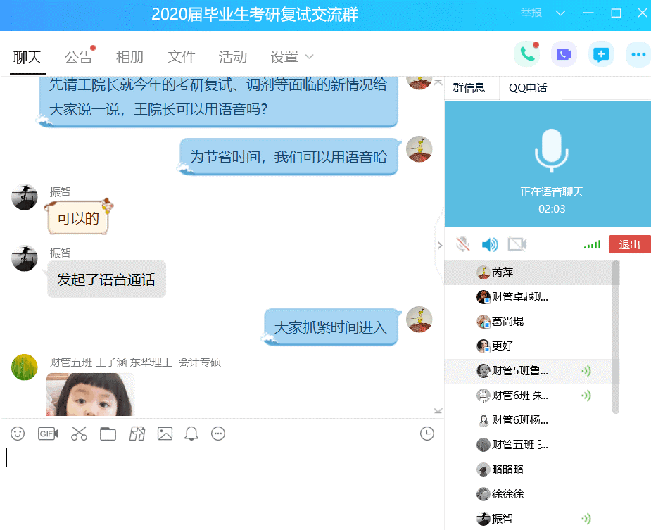 本网讯(通讯员:魏银银)随着2月21日下午财会与金融学院关于2020届毕业生就业工作专题会议的召开,就业方案的布置,现各项就业工作已在积极开展中。结合当前特殊情况,2月28日,财会与金融学院针对2020届考研毕业生,开展线上复试指导会。科技学院副院长王为科、财会与金融学院院长助理芮萍、行政秘书及有兴趣的考研学生参加了此次线上指导会。会议由芮萍主持。