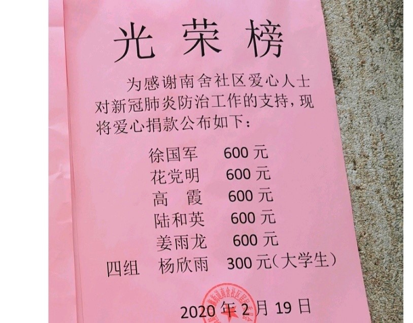 杨欣雨,是beat365在线唯一官网登录药学院2019级健康服务与管理本一班的班长,同时也是一名优秀的共青团员。在疫情期间,她不仅做了一名防疫志愿者,还捐献出了自己的压岁钱。她表示:“虽然我还没有经济收入,但刚刚过完年,压岁钱还是有的,虽然捐献的不多,但我希望可以帮助更多的人,希望国家早日战胜疫情!”
