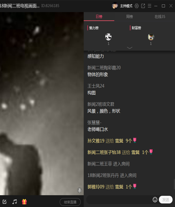 当每个知识点被一一击破的时候,学生们会不由自主为老师“打赏”,并肯定老师所教授的内容。此外,他积极与媒体一线工作人员联系,获取一手资源,丰富课堂教学案例,很好地调动了学生对于课程学习的热情。他的线上教学效果得到了院领导、同事、学生的一致认可与肯定。
