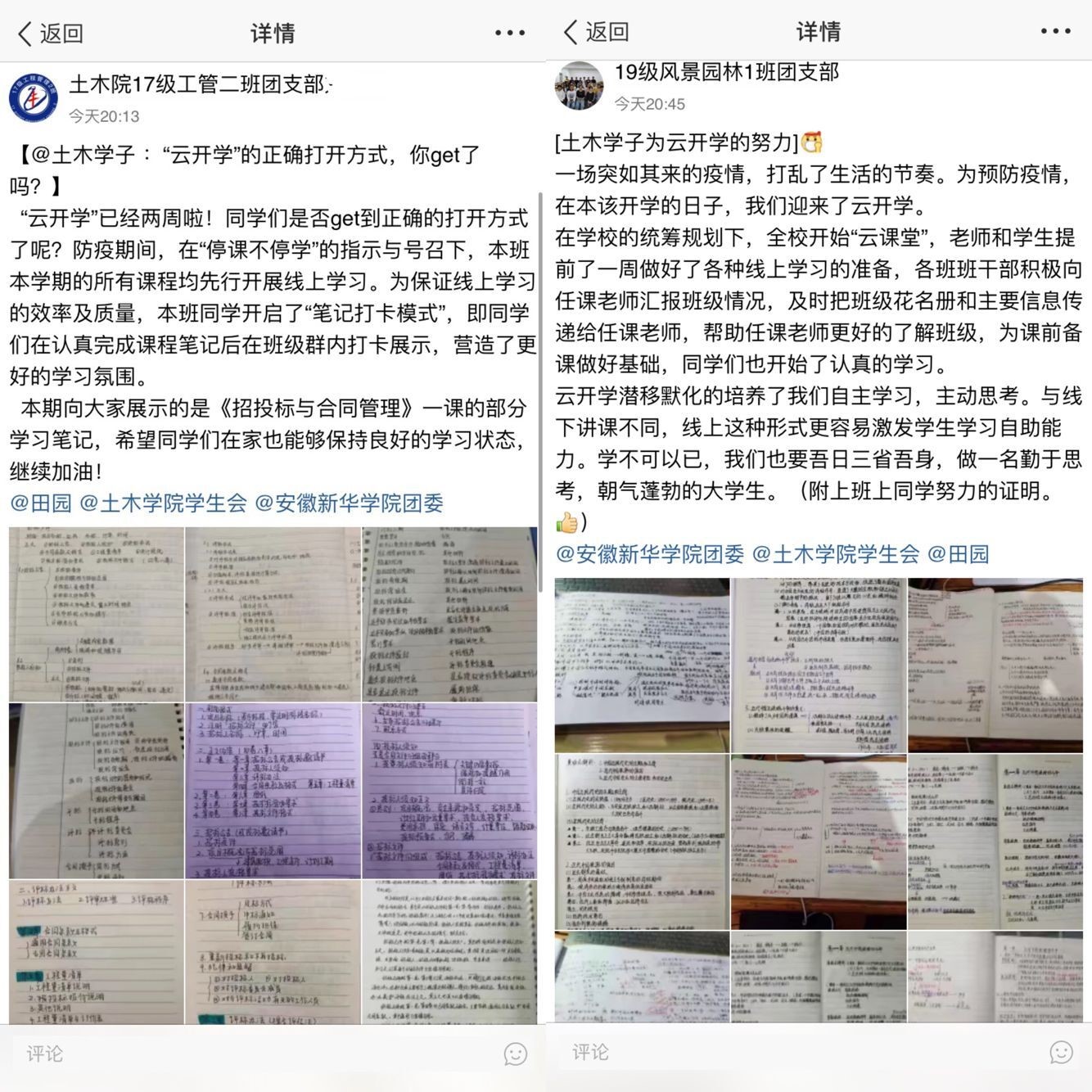 各班辅导员按照学院学生管理工作的要求,于2月27至29日期间对所有学生召开了网络主题班会,在会上重点强调了网络课程学习的重要性,并要求大家实时在线,关注班级群和校园官网、公众号等发布的消息,认真收看收听信息,不信谣不传谣,防止电信诈骗等内容。