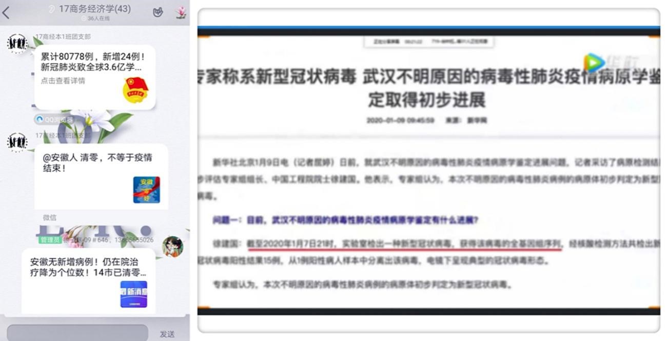 打赢疫情防控战,离不开科学的举措,也离不开科学知识的传播。因此在本次活动中,青年团员们首先通过共同观看官方渠道发布的疫情新闻来学习防疫知识,及时了解最新动态、明辨真伪、遏制网上谣言传播,为防疫工作大局作出应有的贡献。