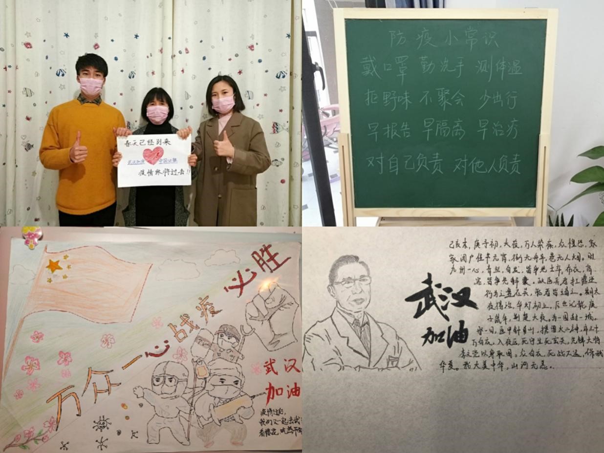 同时,商学院团总支提出“线上加油接力”的形式,广大团员们带动身边亲人一起自制手写标语、绘制手抄报、剪辑短视频,发布在QQ空间、微信公众号、抖音等平台,通过大众喜闻乐见的形式宣传防疫知识、疏导不良情绪,向奋战在一线的人员致敬,为抗疫做出贡献。