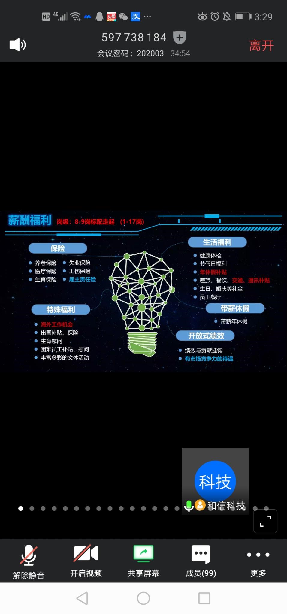 宣讲会分为三个部分,首先企业人事主管全面介绍了公司的基本概况、规章制度、福利待遇、企业文化、现有产业结构、人力资源政策,同时本次针对通信工程、电子信息工程、电气工程及其自动化三个专业提供的就业岗位:技术支持工程师进行了说明。随后IT运维部部门经理为毕业生详细介绍了技术支持工程师岗位具体工作,IT运维部主要业务和服务项目。在第三部分线上互动发言中,同学们就自己所关心的问题积极咨询,如公司的培训体制,公司人才招聘的具体专业需求,下阶段面试的具体方式和大概时间,加班和出差的频率等等。相关负责人一一作了解答。中通服和信科技有限公司人力资源部告诉同学们,可以通过邮箱投递个人简历公司下周即会以邮件形式通知面试时间。