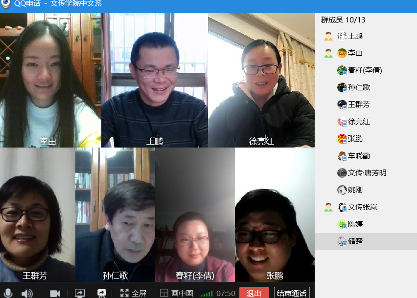 本网讯(通讯员:李由)为保证疫情防控期间教科研工作持续开展,根据文化与新闻传播学院工作统一部署,中文系于3月13日通过QQ群召开视频交流研讨会。会议请中文系孙仁歌教授、车晓勤教授等就教科研心得体会与大家进行交流与分享。全体中文系汉语言文学专业和学前教育专业教师参加,会议由王鹏助理主持。