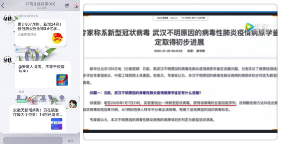 打赢疫情防控战,离不开科学的举措,也离不开科学知识的传播。因此在本次活动中,青年团员们首先通过共同观看官方渠道发布的疫情新闻来学习防疫知识,及时了解最新动态、明辨真伪、遏制网上谣言传播,为防疫工作大局作出应有的贡献。
