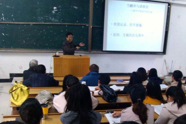 王冀皖先生的讲座主题突出,脉络清晰。他从个人对翻译的认识和感受谈起。他认为,翻译就是先翻后译,翻译就是解释,翻译无定式,译无定稿,越改越好。接着,他详细讲解了资深翻译专家对翻译和译稿的要求,首先要让对方懂,其次要对原作负责,不可夹杂自己的观点和想法,并且要对受众负责,在明确表达语义的基础上,运用语言艺术为翻译内容增彩。