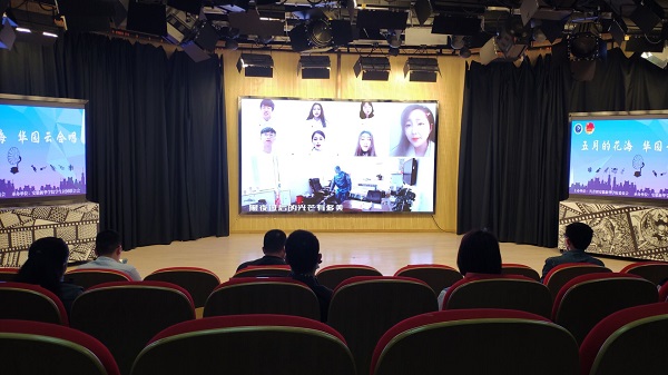 “云合唱”优秀作品一经发布,即受到了广泛关注,获得校内师生强烈反响。4月29日,学校采用线上直播+线下展播的模式开展此次“云端合唱节”的评审会。