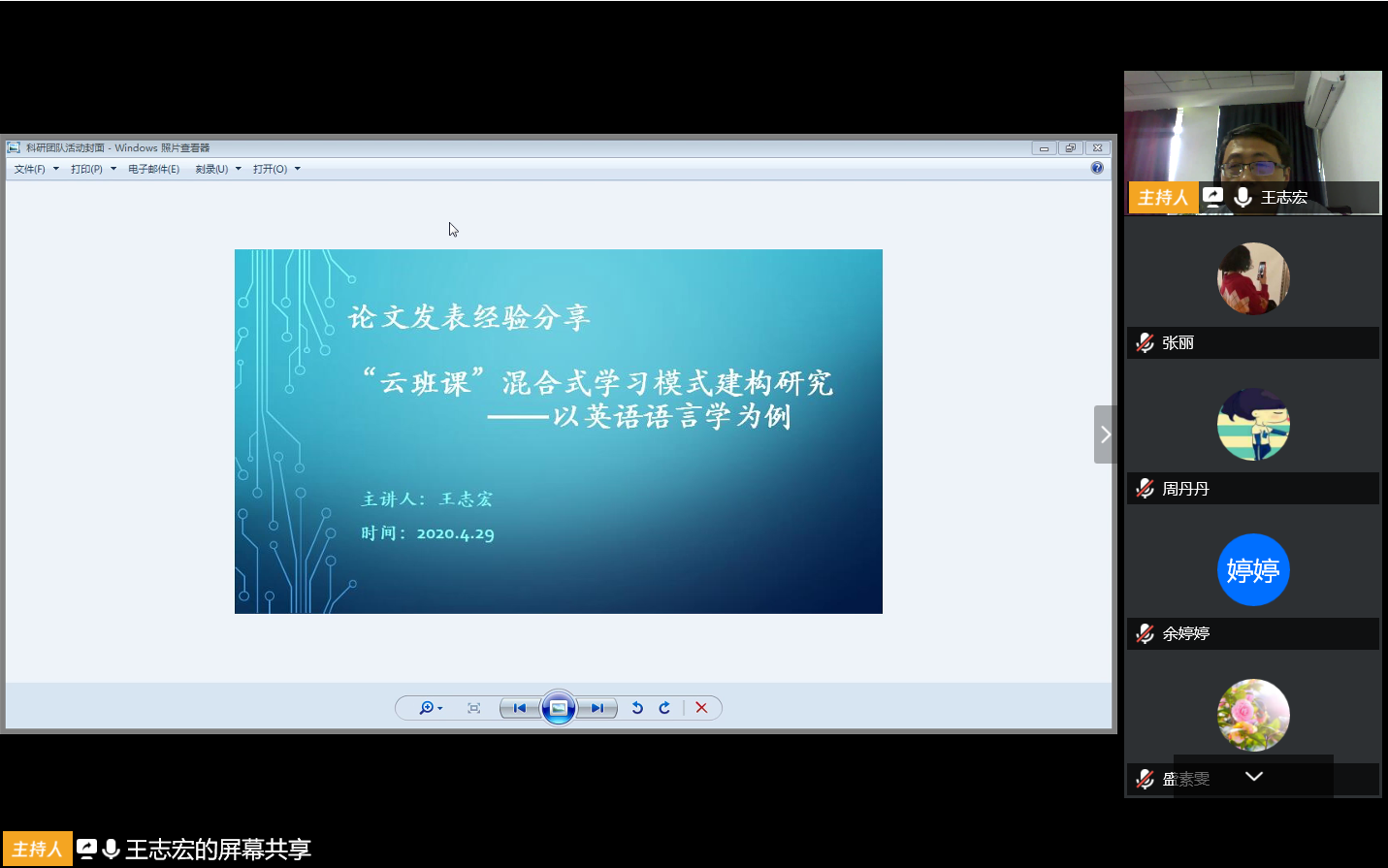 本网讯(通讯员:张丽)近日,外国语学院语言学及应用语言学教科研团队利用腾讯会议平台开展了“论文撰写发表经验交流”活动。外国语学院副院长王志宏及全体团队教师参加了讨论交流。教师张丽主持了本次团队活动。
