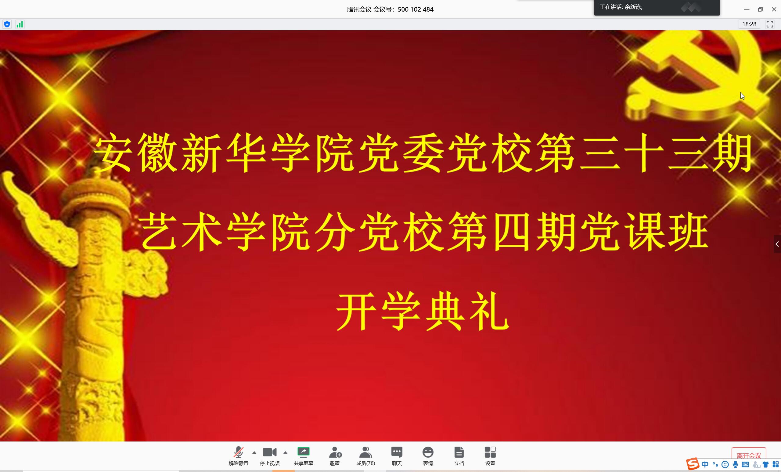 本网讯(通讯员:高扬)为加强对入党积极分子的培训,做好艺术学院党员发展工作,beat365在线唯一官网登录第三十三期艺术学院分党校第四期开班典礼于2020年5月7日中午在腾讯会议线上开展。艺术学院党总支书记许存福、总支副书记郑妮、宣传委员刘刚、组织委员黄梦、纪检委员余新泳、组织员张大勇、第一学生党支部书记张小菊、第二学生党支部书记高扬和71名党校学员参加了此次典礼。