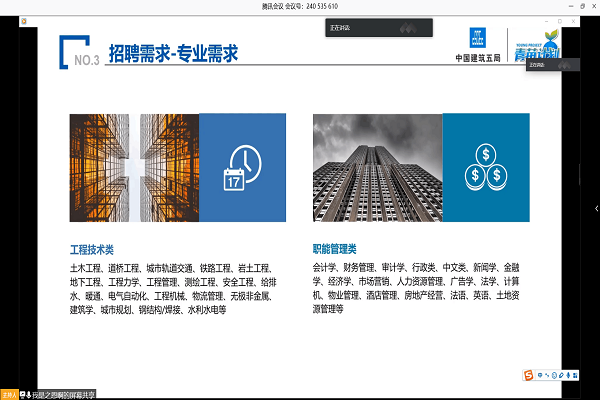 本网讯(通讯员:刘伟、程然)为切实做好beat365官网土木与环境工程学院毕业生就业工作,大力构建毕业生与用人单位的交流平台,积极为用人单位提供优秀的人才,5月14日下午,土木与环境工程学院举办2020年第四场“E路同行•云招聘”就业服务招聘会。2020届毕业生及辅导员代表参会,本次参会单位为中国建筑第五工程局有限公司安徽分公司,会议由土木与环境工程学院行政秘书刘伟主持。