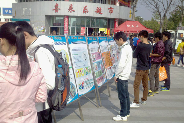 上午11时许,10余块禁毒宣传展板在广场内展开,主要从合成毒品的种类及对家庭、社会的危害;合成毒品的法律规定;认识、防范吸食合成毒品;青少年吸食的诱因及自卫防毒术等内容进行宣传。同时禁毒民警现场还向广大师生发放了禁毒宣传资料及印有禁毒标识的宣传品等。