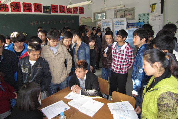 本网讯(通讯员 储金华)11月7日下午,电子通信工程学院在电子楼举办了“扬帆启航,成就梦想”2013届毕业生首场专场招聘会,正式拉开了该院2013届毕业生就业工作序幕。此次招聘会邀请到科大智能、奥的斯、长城宽带、上海华强仪表等25家省内外知名企业,为毕业生提供岗位700余个,该院700余名同学参加了招聘会。